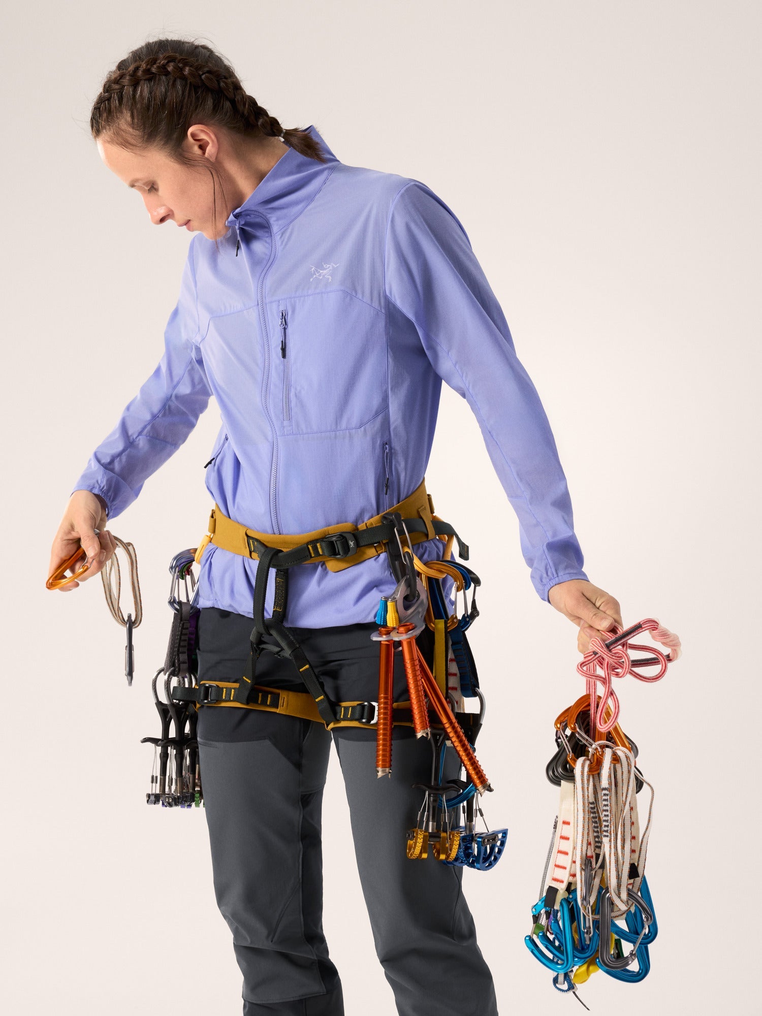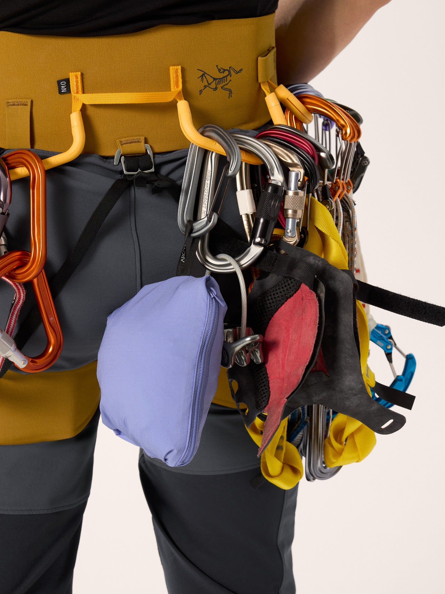 - Stows into its chest pocket and clips to carabiner for compact transport